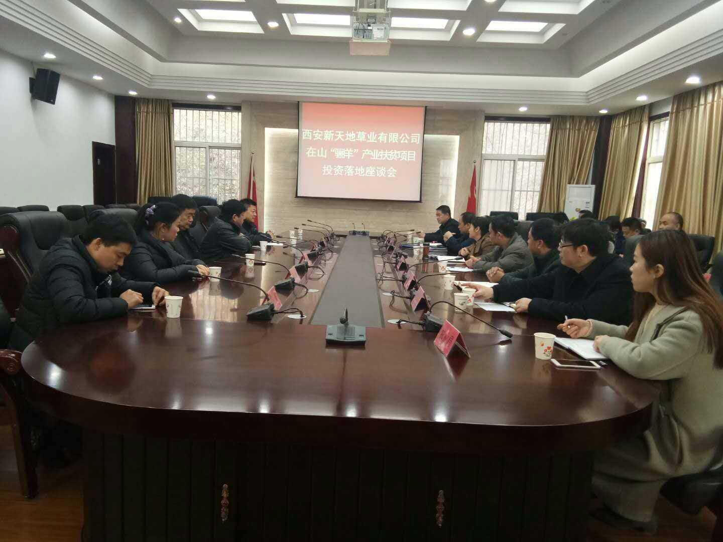 为加快推进西安新天地草业有限公司在山“骊羊”产业扶贫项目投产落地,西安新天地草业有限公司董事长张璠等一行7人来我县洽谈对接投建事项。