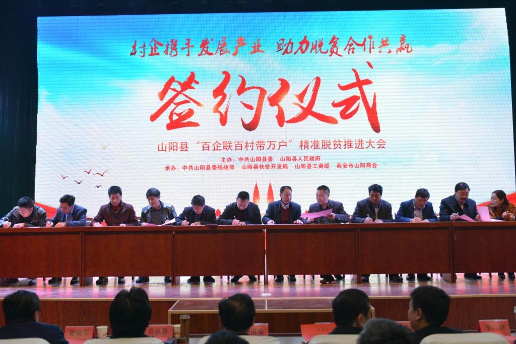 3月9日,山阳县以“村企携手发展产业,助力脱贫合作共赢”为主题,举行了“百企联百村带万户”精准脱贫推进大会。此次大会由由县委、县政府主办,县委统战部、县扶贫局、县工商联、西安市山阳商会具体承办,所有在家的县级领导,县直相关部门、单位主要负责人,各镇(办)书记,全县贫困村党支部书记,以及200余名西安市山阳商会、县内外企业家代表参加了会议。