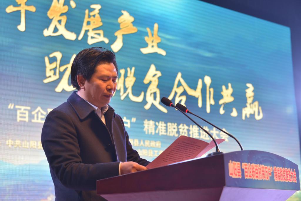 县委书记张国瑜在讲话中就开展好“百企联百村带万户”精准脱贫行动,提出了希望和要求:一要抢抓机遇,积极响应乡村振兴战略号召,扎实开展脱贫攻坚工作,主动参与“百企联百村带万户”精准脱贫行动,努力在助力脱贫攻坚、加快山阳发展中,拓展企业发展空间,实现更高层次的人生价值。二要实现村企精准对接,结实利益联结,做到精准掌握村情、精准帮扶内容、精准帮扶方式,进一步激发贫困群众自力更生、艰苦奋斗、勤劳致富的内生动力。三要大力发展产业,实现合作共赢,持续推行“三创三带”、“三变”改革,进一步盘活农村集体资源、资产、资金,带动群众致富增收。四要强化保障,确保各方共同参与、打好“总体战”,推动“百企联百村带万户”精准脱贫项目落地见效。各级各部门、全体政府工作人员要为在山阳投资、在山阳发展的企业,当好“店小二”和“服务员”。